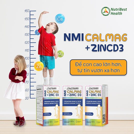 Tên sản phẩm: Thực phẩm bảo vệ sức khỏe NMI CalMag + ZincD3 (Syrup uống hỗ trợ giúp xương, răng chắc khỏe và tăng cường sức đề kháng)